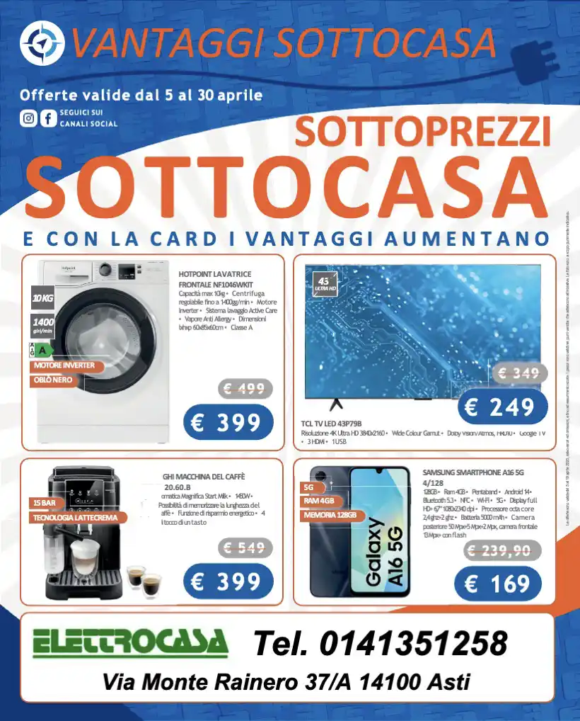 Passa in negozio a scoprire tutte le offerte del mese o visita il nostro sito web per sfogliare il catalogo online. Elettrocasa ad Asti ti aspetta con prodotti di qualità e risparmio garantito ogni mese!